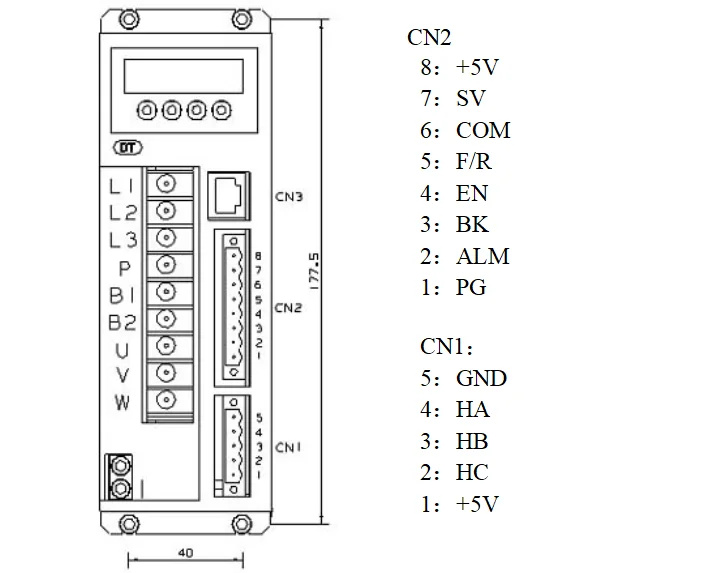 | 4 | P | High voltage DC bus line terminal | DC bus line terminal in driver, rated power 315V, Part of the products are built in brake resistance ,When using external brake resistance, connect it with P,B2. NOTE !!! Can not simultaneously access P and B1 |